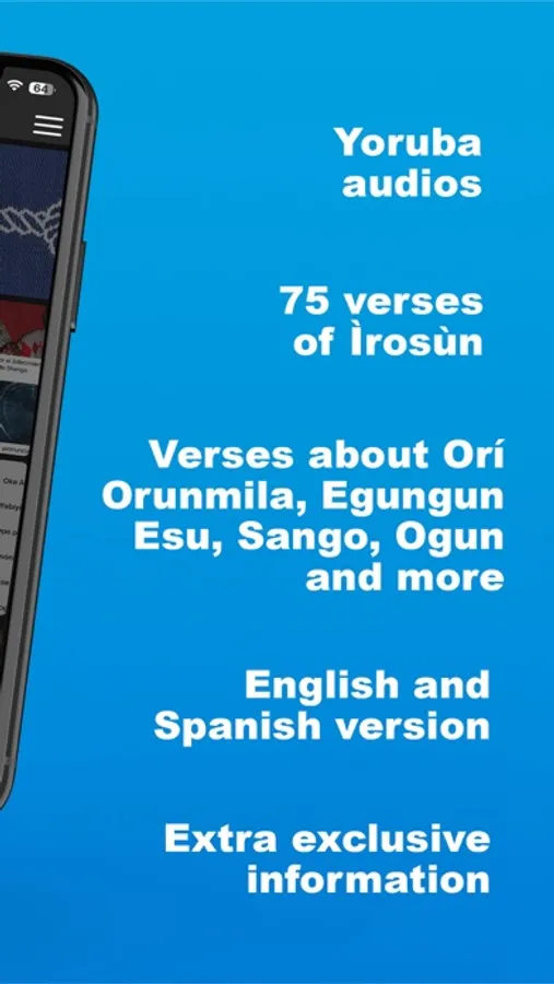 Each of the verses are accompanied by audios recited by authentic Yorùbá-speaking Babalawo, to correct the perfect pronunciation of Yorùbá and, in turn, reduce the time necessary to memorize all this Ifá information available in the application.