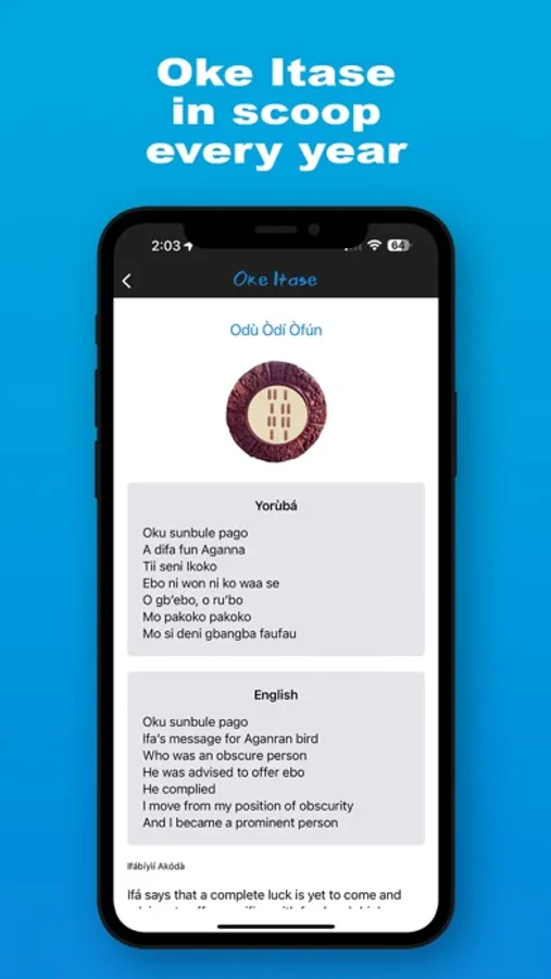 We are pleased to present the new Ifá application, Apola Ìrosùn with which you will continue to increase and perfect your knowledge of traditional practice. Apola Ìrosùn is the fourth app in the Apola series, with which you will have access to new unpublished Ifá verses of the 15 signs of Ìrosùn accompanied by their audios in Yorùbá.