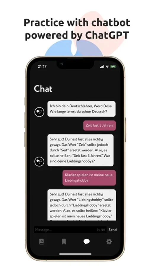 • You can also practice your German with ChatGPT-powered chat bot for a more interactive learning experience.