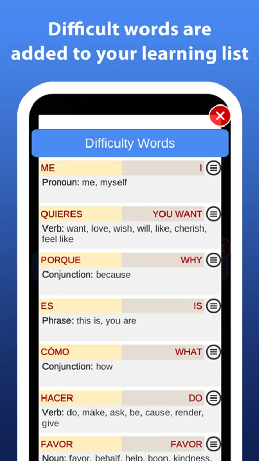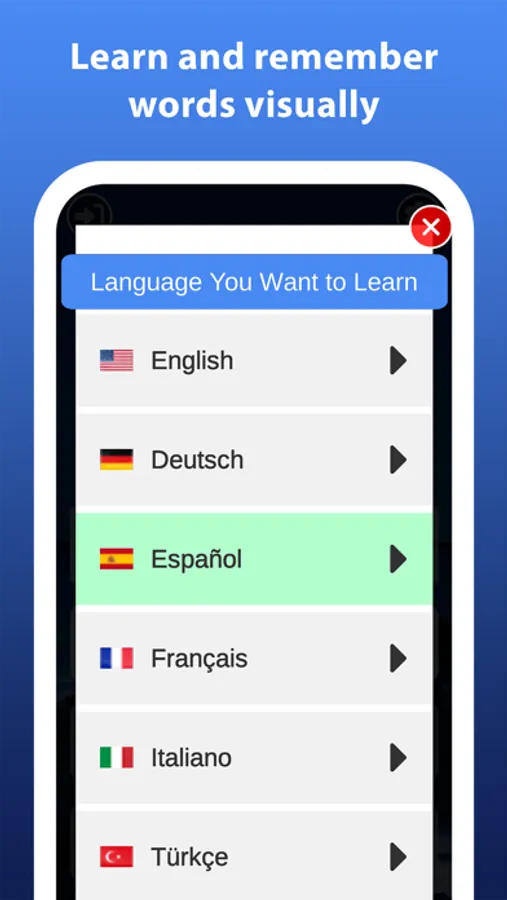 Learn words quickly and effectively in 6 popular languages (English, German, French, Italian, Turkish, and Spanish)!