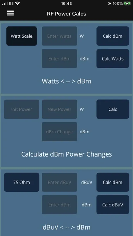 Convert Watts to dBm, calculate dBm power changes, convert Return Loss to VSWR, etc...
