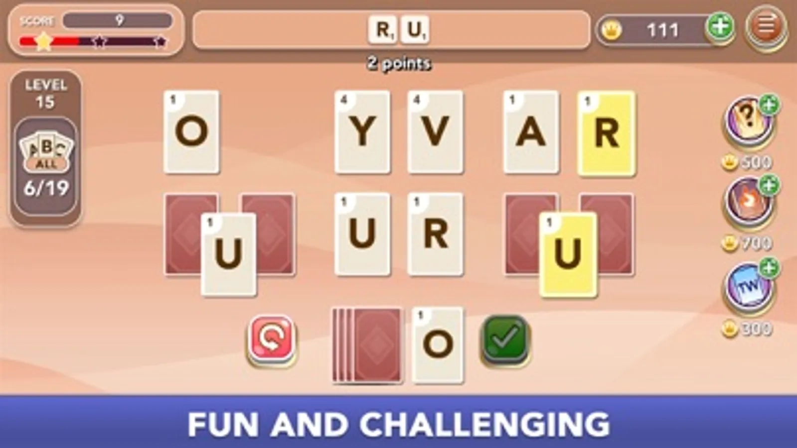 - Clear all the cards and win bonus coins by clearing specific goals and solving letter puzzles