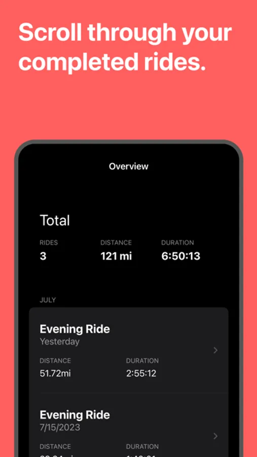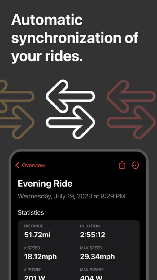 You can easily and automatically upload your saved rides to Strava, sync them with Apple Health or export them as a file.