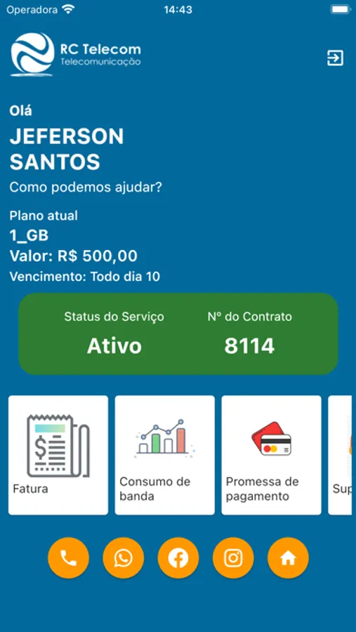 No app da Central do Assinante da RCTELECOMNET você pode:
