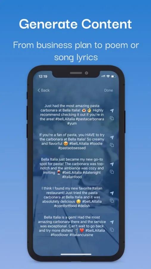 • Creative Writer: with this powerful feature, you can generate all kinds of text content, from blogposts and articles to email messages, social media posts, poems, essays, song lyrics, tips, advices and many more. Whether you're a professional writer or just starting out, Creative Writer makes it easy to create engaging, high-quality content that resonates with your audience. User-friendly interface for setting tone, structure and style of your text.