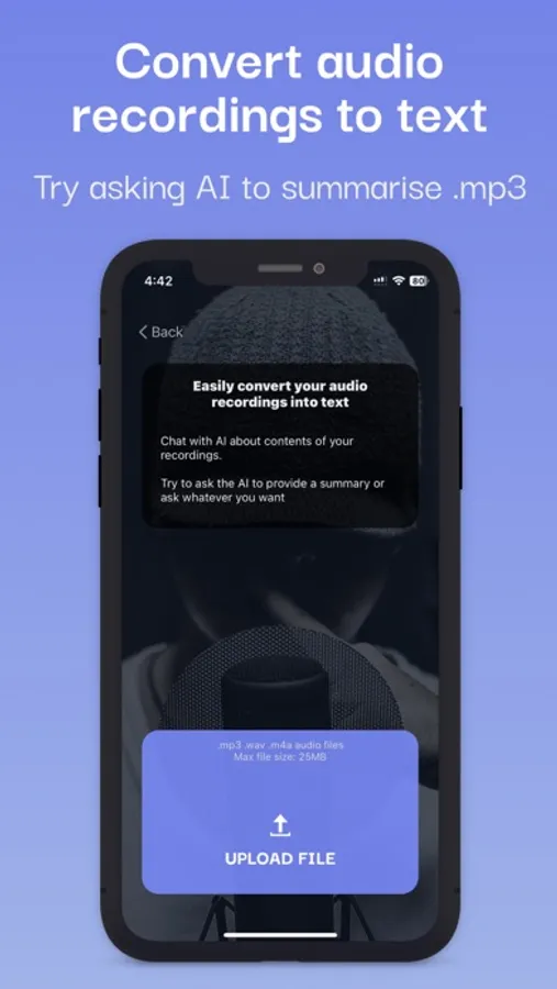 • Voice to Text: Want to transcribe some audio recording and chat with AI about it contents and meaning? Easy. Let our assistant help you with understanding voice recordings.