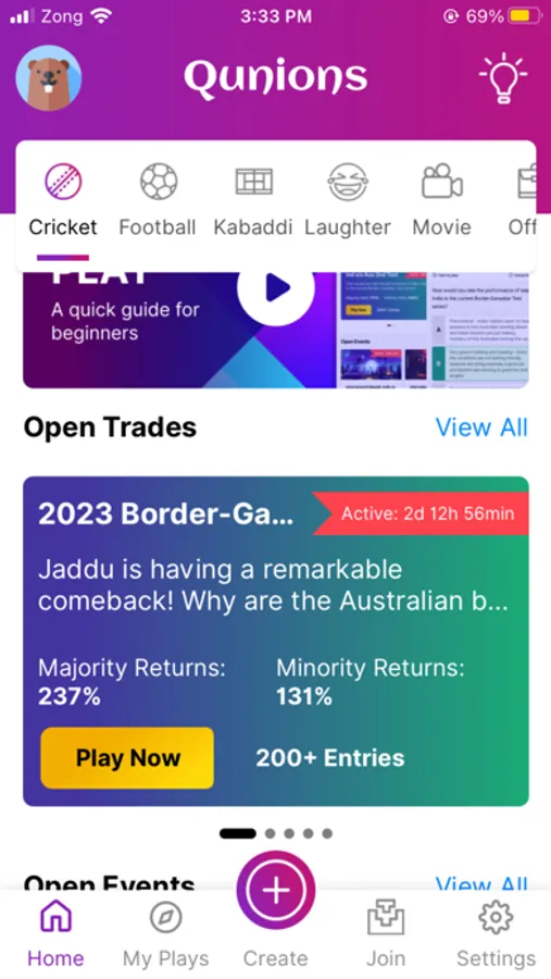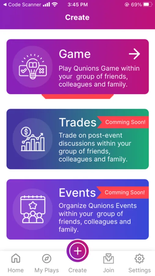 Qunions is a Questions and Opinions platform, where there are only opinions to questions – no factual one correct answer! Choose an opinion that you think/analyze would be most popular or most unique in your group or in an open event. There are 3 different Qunions format – Trades, Events and Game. For different Qunions formats, strategize as per the game’s winning objective and read others psychology to win.