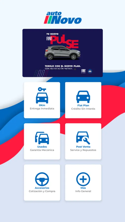 Auto Novo Concesionario Oficial para marca de FIAT. Comercializamos vehículos 0km, Planes de ahorro y usados de varias marcas y modelos, Servicio de Postventa, Repuestos y Accesorios. Nos encontramos en la Ciudad autónoma de Buenos Aires y Ofrecemos atención personalizada en nuestras sucursales: