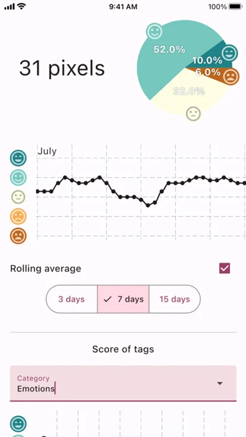 Every day is a Pixel! Track your mood in a simple, quick and easy manner. Log your thoughts through notes and the emotions you felt with tags. Create custom tags for a more advanced and personalized journaling strategy.