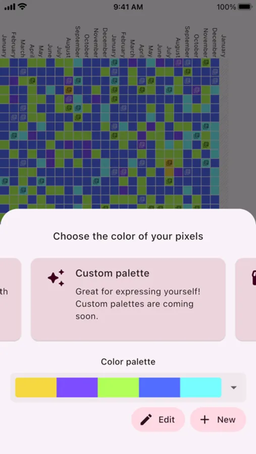 You can also create a “Year in Pixels”, get reminders, customize the colors of your Pixels, secure your Pixels with a password, and more!