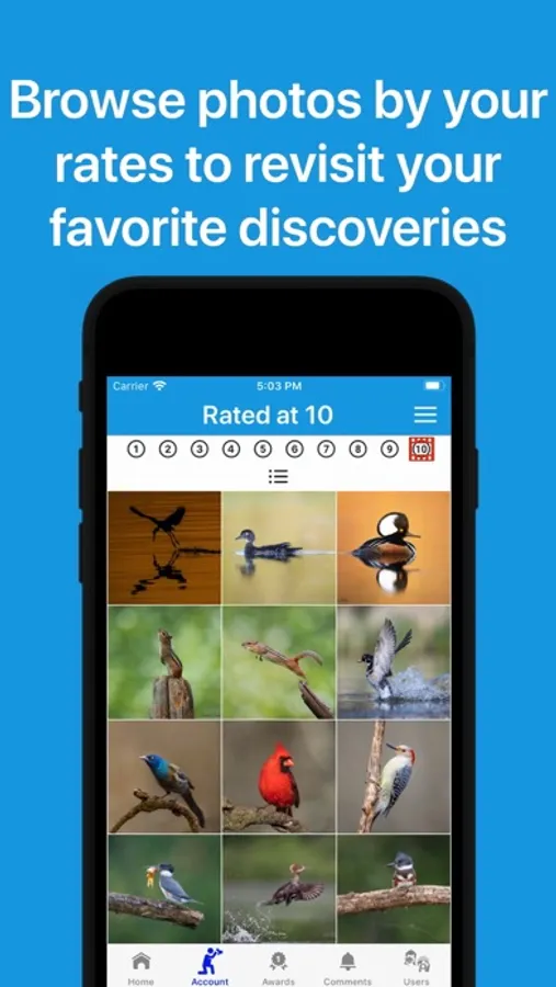 Easily revisit your favorite discoveries by browsing photos based on the ratings you've given. Curate your own collection of favorite images.
