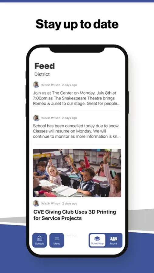 In the Live Feed is where you'll find updates from the administration about what's going on in the district right now. Whether that's celebrating a student's success, or reminding you about an upcoming deadline.