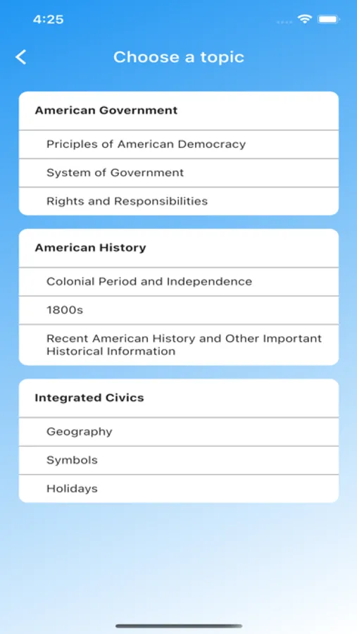 Our app is designed to help people prepare for their Citizenship interview. It features practice questions, as well as resources from the most popular YouTube videos and USCIS resources. We hope our app will make the Citizenship interview process easier and less stressful.
