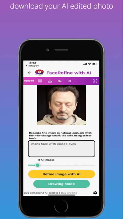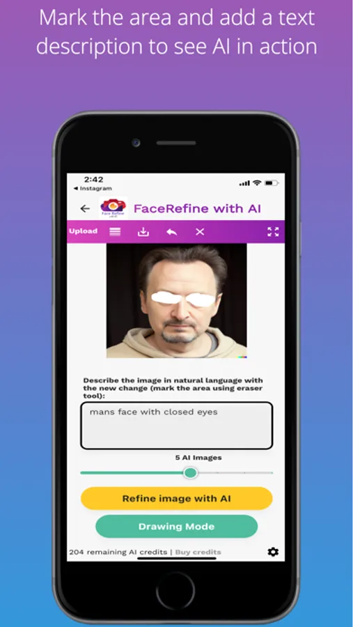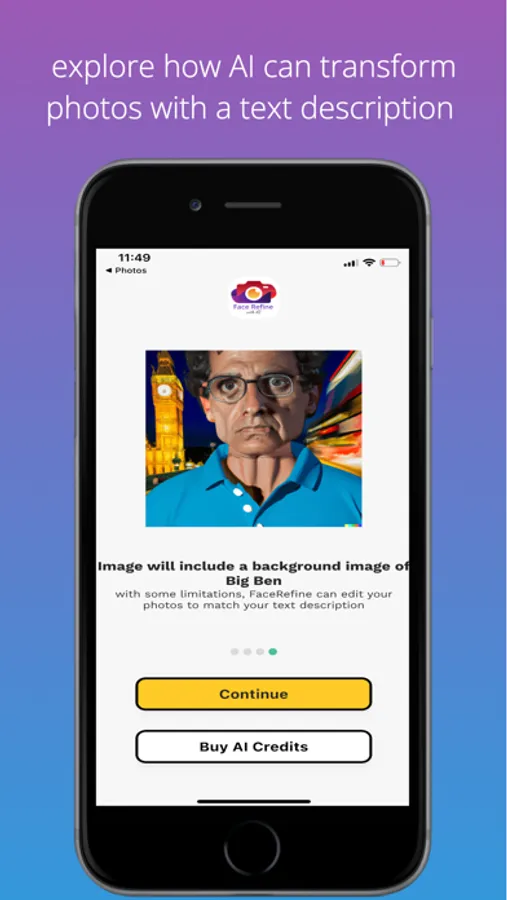 You can buy further AI Credit bundles within the app. Choose from 50, 100, or 500 AI Credits and see the AI magic at work with each "Refine Image with AI" selection.