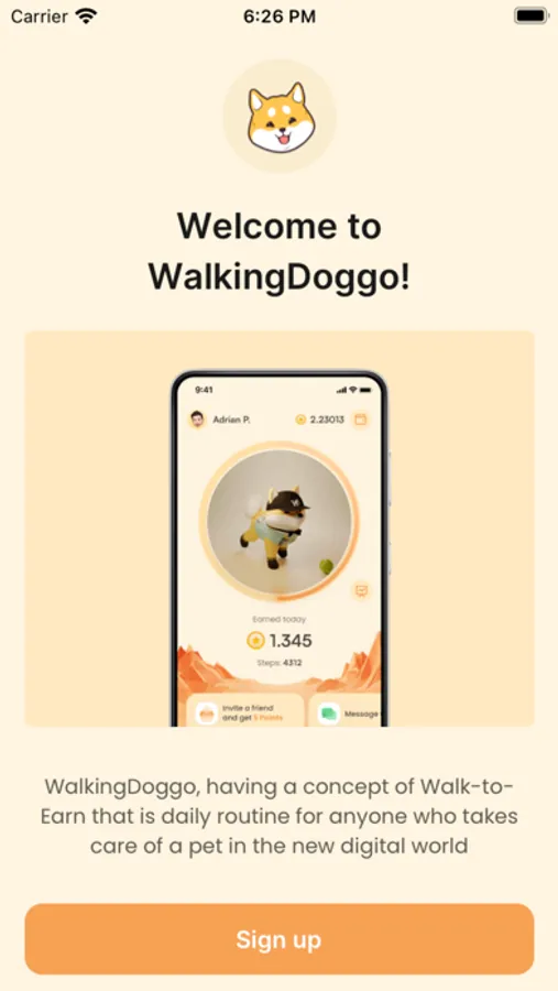 The WalkingDoggo project was initiated inspired by the mission to aid the countless stray dogs across the globe. WalkingDoggo's objective is for individuals to earn points by walking in their everyday lives.