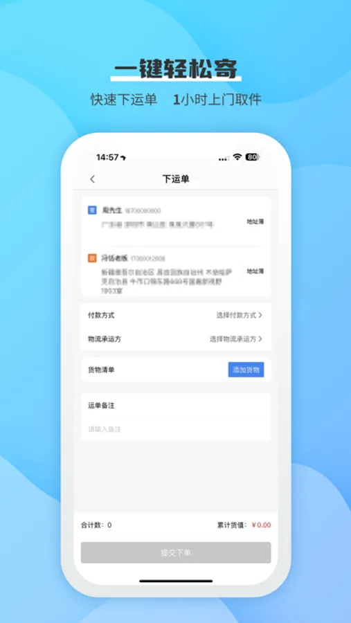 物流下单:下单、在线支付运费等