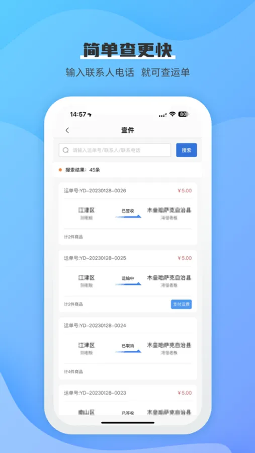 运单查询:支持多条件的运单查询