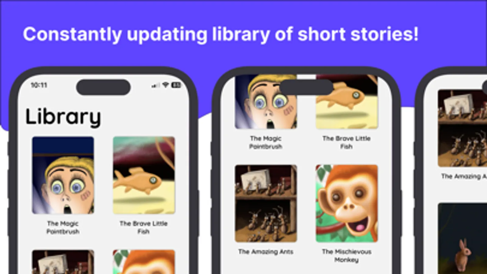 With a constantly updating library of short stories, you'll have a variety of options for books to read at bedtime or for children to read by themselves!
