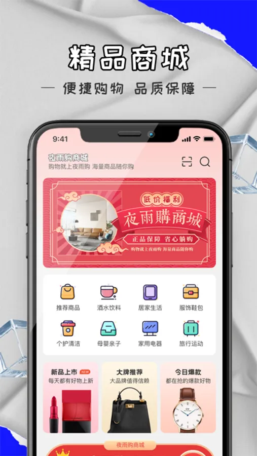 夜雨购,品质生活,平台以“帮助商家赋能和为消费者确权”为经营理念,依托自身的优势资源和服务,精选3c数码、大牌鞋服、化妆品、手表、家居等多款品种、满足你的购物需求!