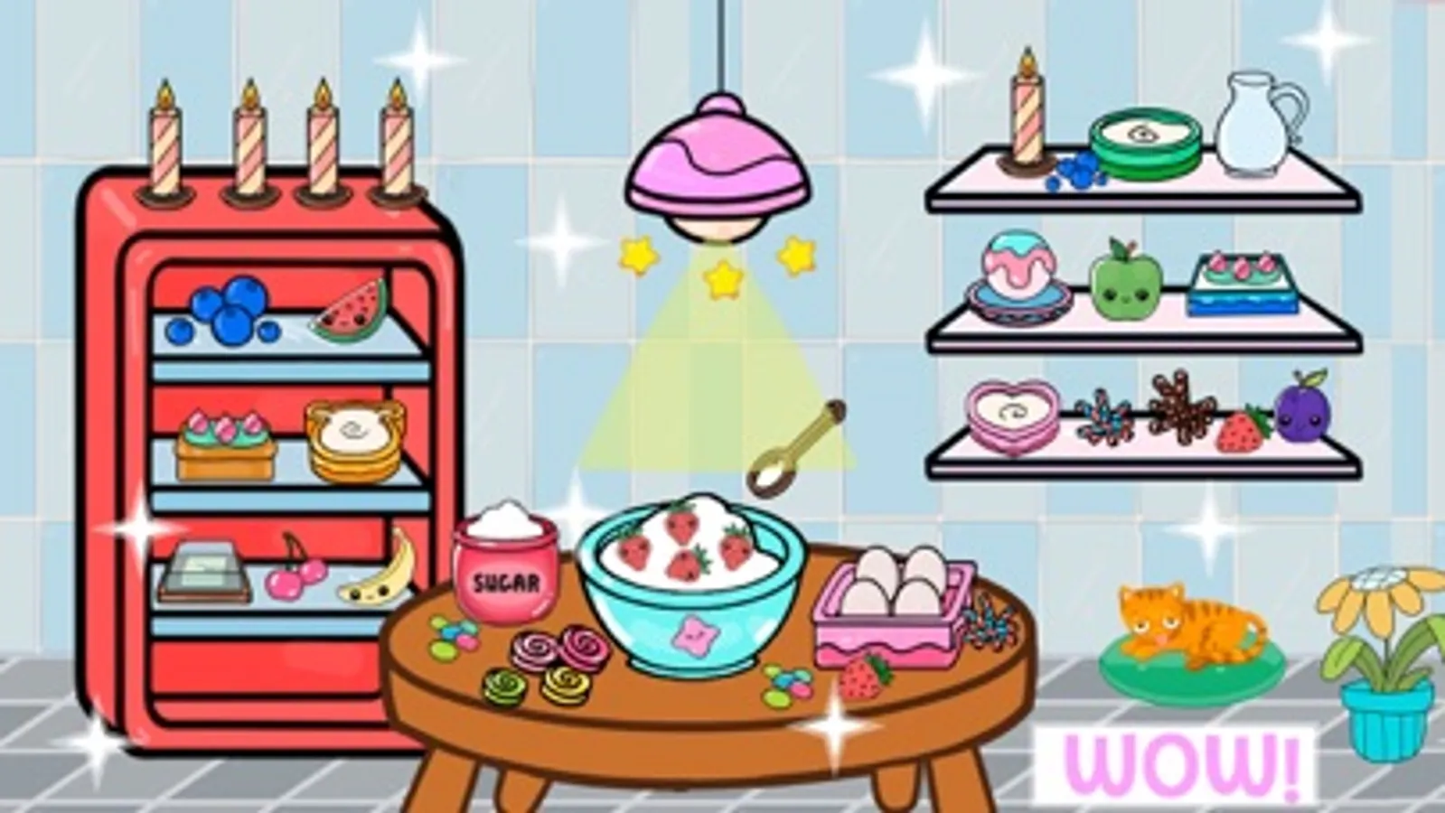 forgings. Don't forget to mix, there's a mixer for that! Next, you need to pour the dough into a baking dish. Choose the shape you like! Decorate the cake with stickers, lollipops, candies and other sweets! Treat your friends!