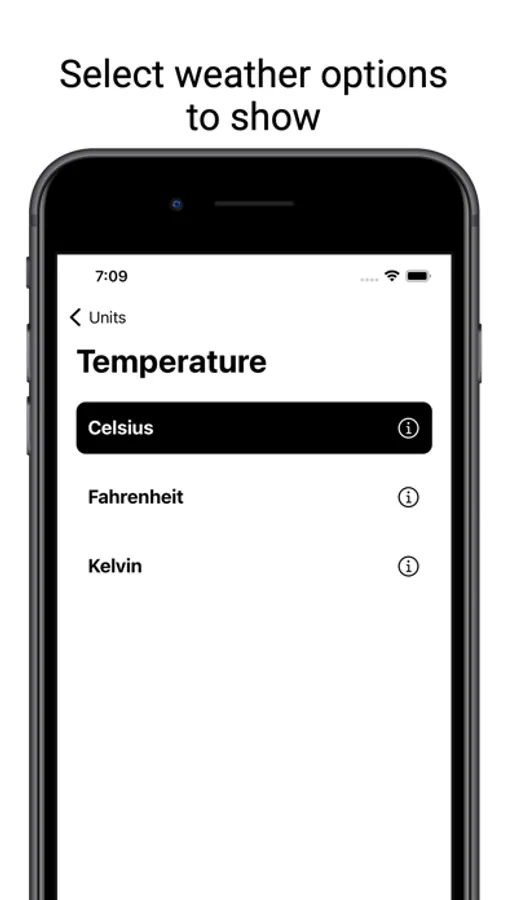 - You can chose measure units to show like (km or mi, Celsius or Fahrenheit etc.)