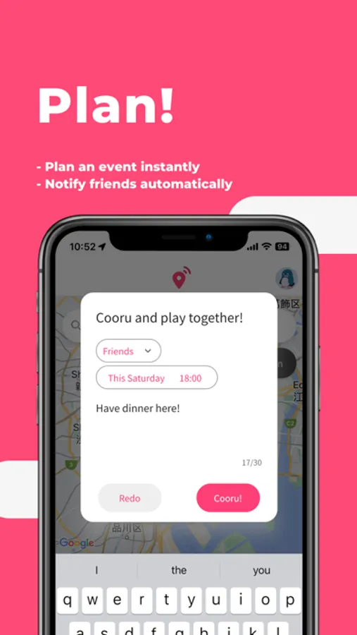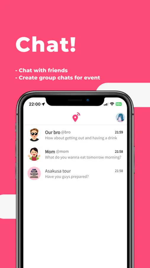 - Chat and coordinate with friends in the app