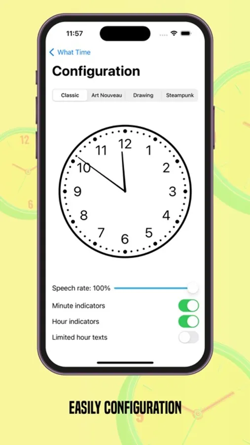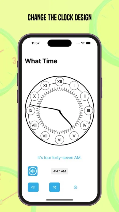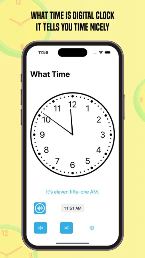 - Press the speaker button to hear the voice pronouncing the time