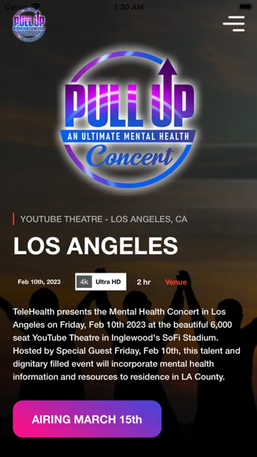 TeleHealth presents the Mental Health Concert in Los Angeles on February 10th, 2023 at the beautiful 6,000 seat YouTube Theatre in Inglewood's SoFi Stadium. Hosted by TeleHealth Van. This talent and dignitary filled event will incorporate mental health information and resources to not only fans in LA County.