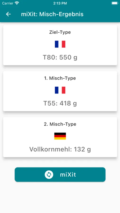 Als Hobby-Bäcker hat man oftmals die passende Mehl-Type nicht zur Hand. miXit soll helfen, schnell und unkompliziert aus vorrätigen Mehlen die gewünschte Mehl-Type zu mixen. Ohne im Kopf zu rechnen, ohne Umstände. Ganz einfach und intuitiv. Mit miXit lassen sich typische Mehle aus Deutschland, Österreich, Frankreich und der Schweiz problemlos miteinander mischen.