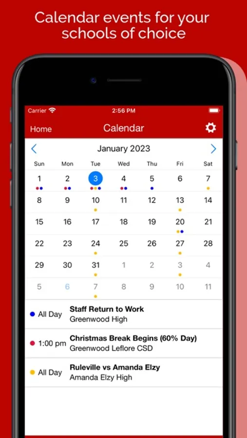 Stay informed of school and district announcements, activities, sports schedules and events at Greenwood Leflore Consolidated School District. Receive important messages from your selected list of schools; monitor district and school activities from social media networks including Facebook. Transfer activities or events directly to your native iOS calendar with a single tap. A school directory allows you to lookup any school within the district and view general or staff member contact information.