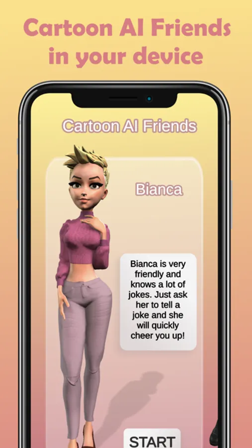 Cartoon AI Friends is companion who cares. Cartoon AI Friends are ai friends powered by artificial intelligence. Cartoon AI Friends - chatbot always on-hand to have a quick chat whenever and wherever you need day or night, chatbot can help you to feel better. Have a friendly AI in your pocket work with you to improve your mood.