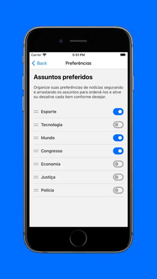 - Personalize a ordem em que as notícias aparecem de acordo com o seu tema de principal interesse;