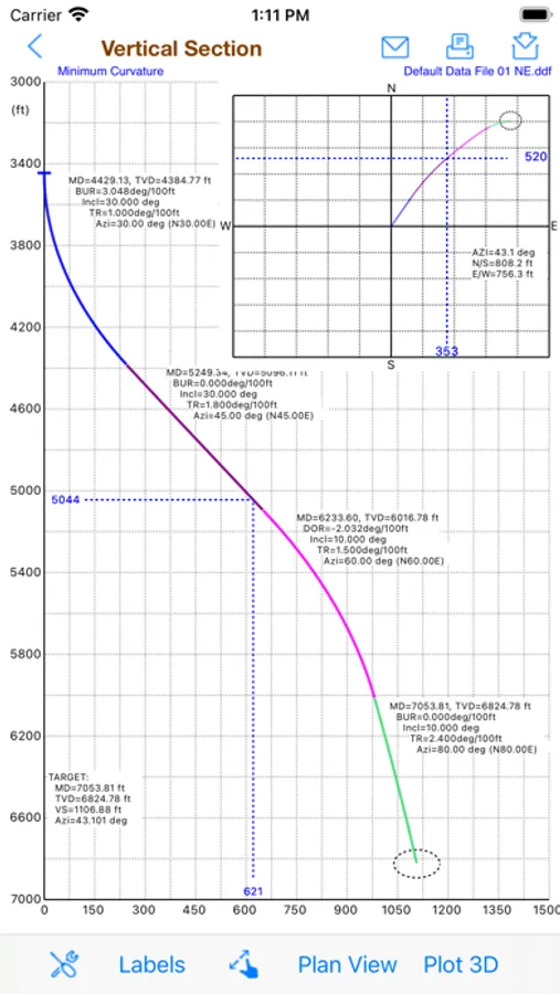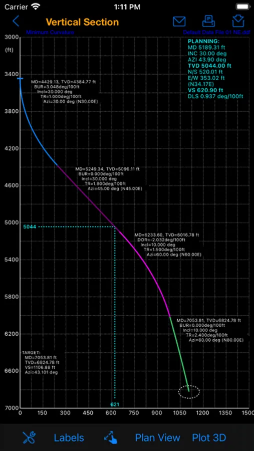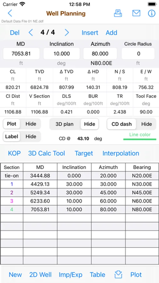 2. Easy 3D calculation tool for well planning with up to 20 multiple 2D and 3D sections (using Minimum Curvature method)