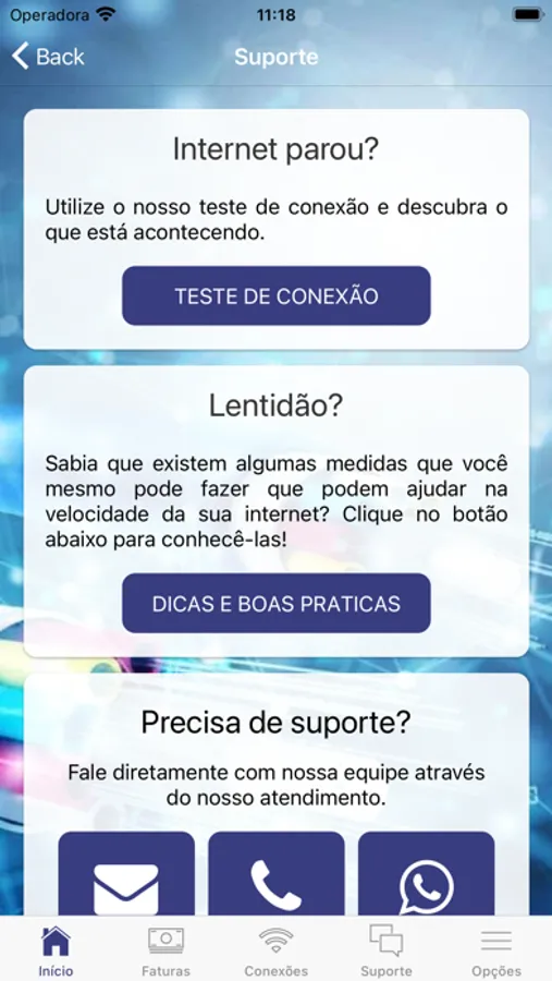 O App é um canal que visa facilitar e otimizar o tempo do cliente, proporcionando o acesso rápido a informações como: