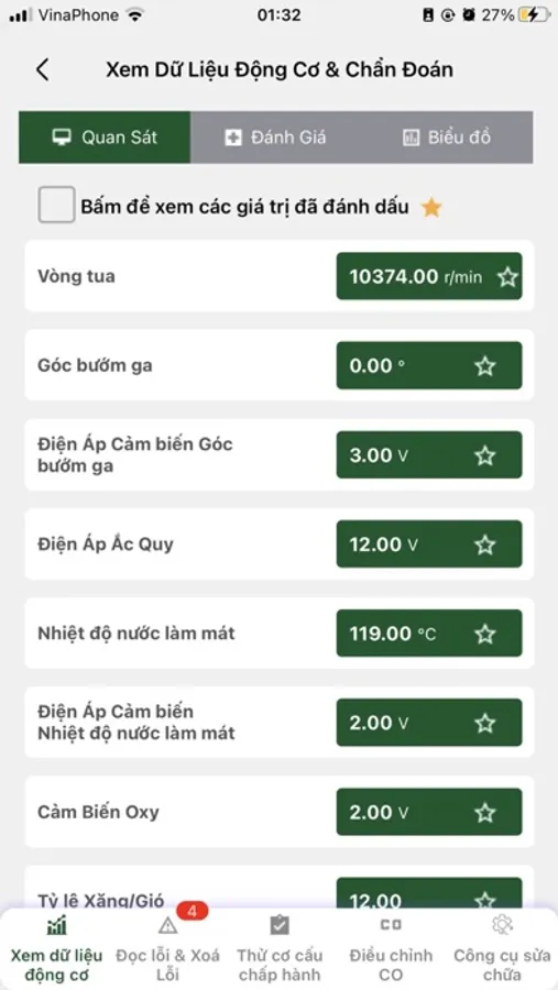 3. Dashboard all values of sensors on motorbikes