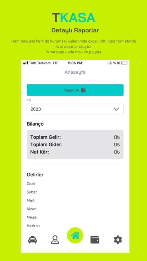 - Bu uygulamanın amacı gün, hafta, ay ve yıl bazlı tüm gelir gider kalemlerini kayıt altına alarak bir taşımacılık yatırımının verimliliğini daimi izleyebilmektir. Gizlilik politikası gereği uygulama içindeki bilgiler hiçbir diğer kurum ve kişi ile paylaşılmaz.