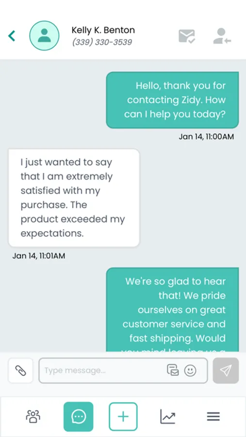 Zidy provides a simple all-in-one dashboard for your team allowing 1-click customer reviews, SMS messaging and chatbot lead-capture features.