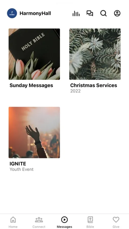 This app will help you stay connected with the day-to-day life of Harmony Hall. With this app you can: watch or listen to past messages; stay up to date with push notifications; share your favorite messages via Facebook, or email; and download messages for offline listening.
