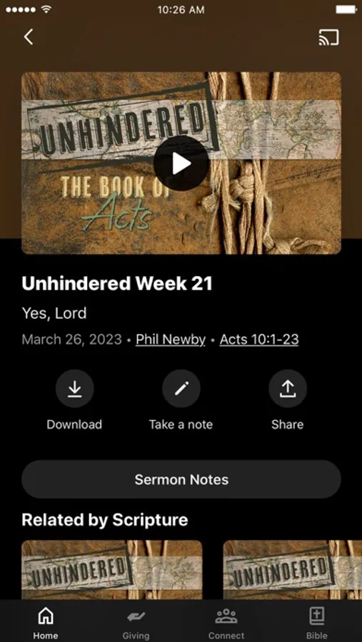 This app will help you stay connected with the day-to-day life of our church. With this app you can: watch or listen to past messages; stay up to date with push notifications; share your favorite messages via Twitter, Facebook, or email; and download messages for offline listening.