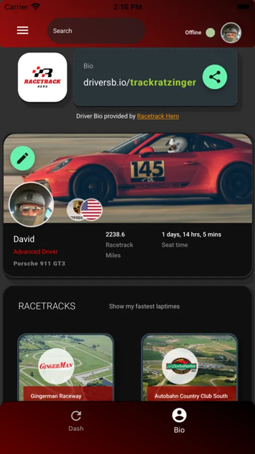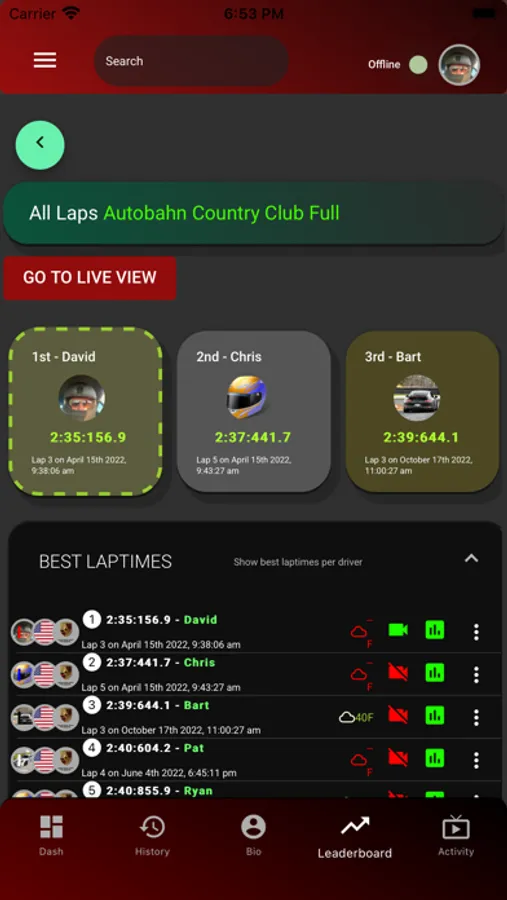 Introducing the ultimate app for racing fans and drivers alike! With this app, you can showcase your skills, achievements, and passion for racing to the world. Create a profile that truly represents you, upload your lap videos, and share your story with the racing community. And with the Drivers BIO, you can see exactly how you're performing and track your progress over time.