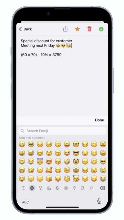 - Different mathematical operations: use simple or engineering calculator (turn your device to landscape mode).