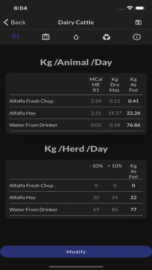 Generate your ration to feed cattle based on NRC nutrition equations. Herd of dairy, beef, calf, steer or fattening in feedlot with your own food.