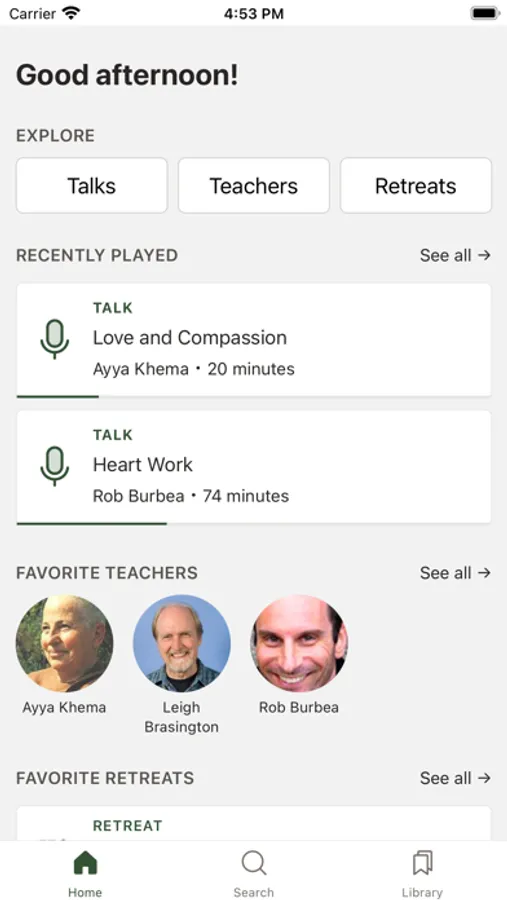 • Search the whole library and filter by talks, teachers, and retreats