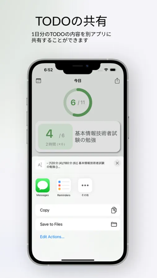 また1日分のTODOの一覧を別アプリに共有することもできます。