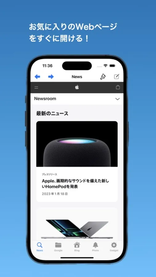 ボトムメニューで簡単かつ素早くWebページを切り替え!
