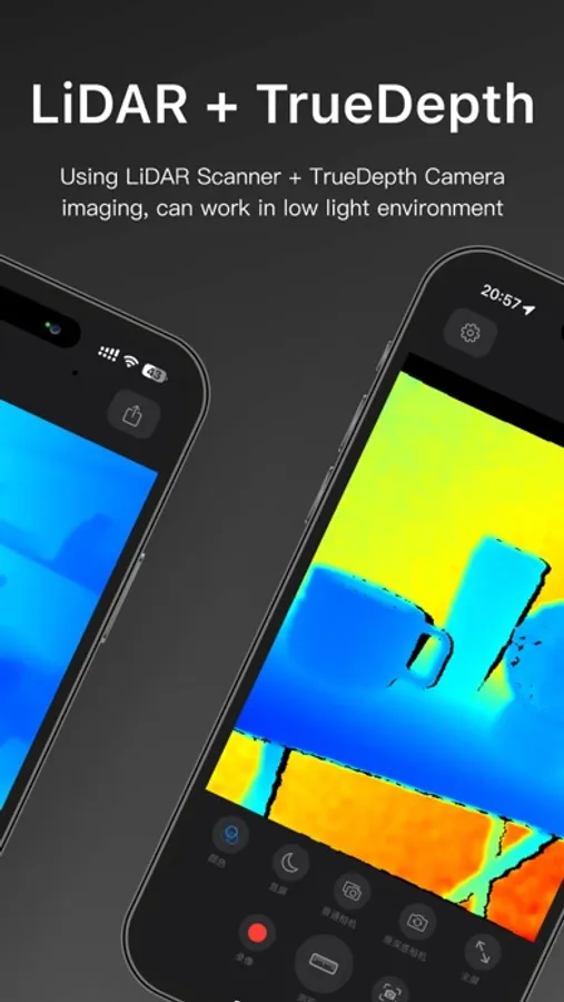 In well-lit environments, the device uses the rear standard camera in conjunction with the LiDAR Scanner or TrueDepth Camera for imaging to ensure optimal image quality. However, in completely dark environments, imaging is solely handled by the rear LiDAR scanner or infrared camera.