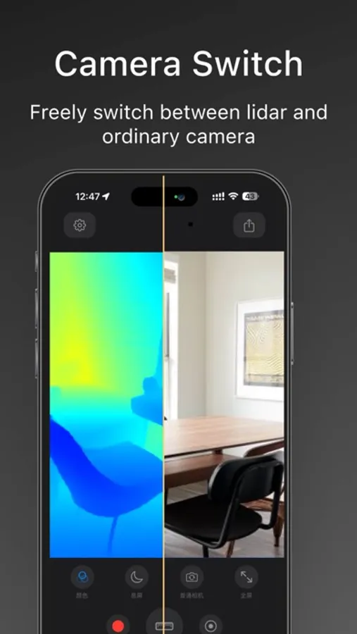 - Video Recording: You can record LiDAR video in conjunction with Regular Camera video and save the footage to the system album.