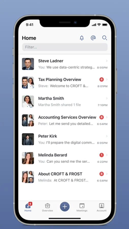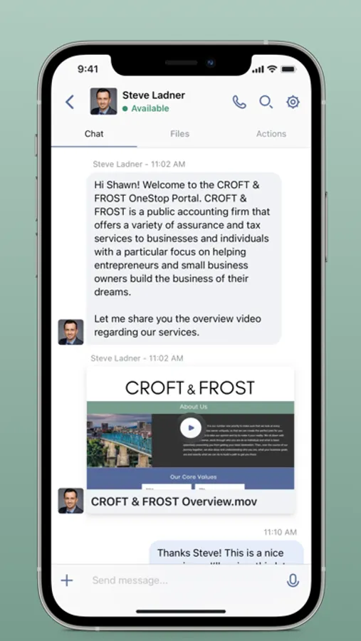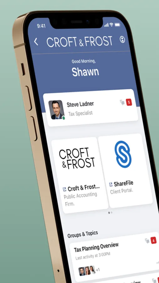 The C&F App is your destination for interacting with our team. Our app enables seamless access to your information and streamlined account management, all within one secure platform. Interactive features such as secure chat messaging, video meetings, document sharing, digital signature, and private workspaces create an efficient accounting experience from your phone. Take your business to the next level with CROFT & FROST.