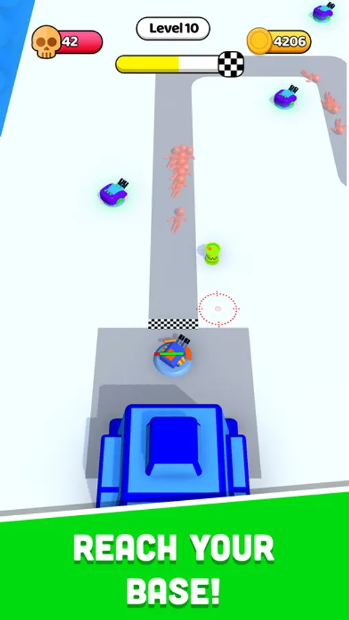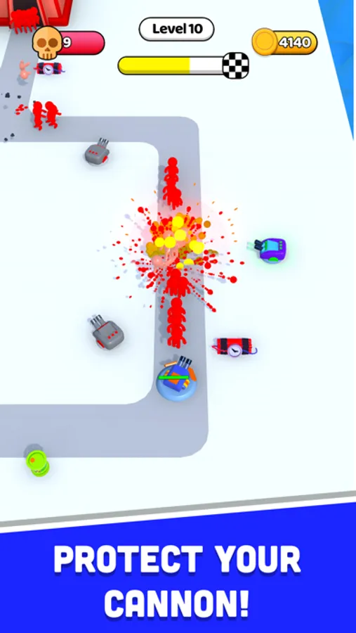 Fight the enemies with cannons. Activate cannons on the road and protect yours from enemies. Save yourself and reach the base!