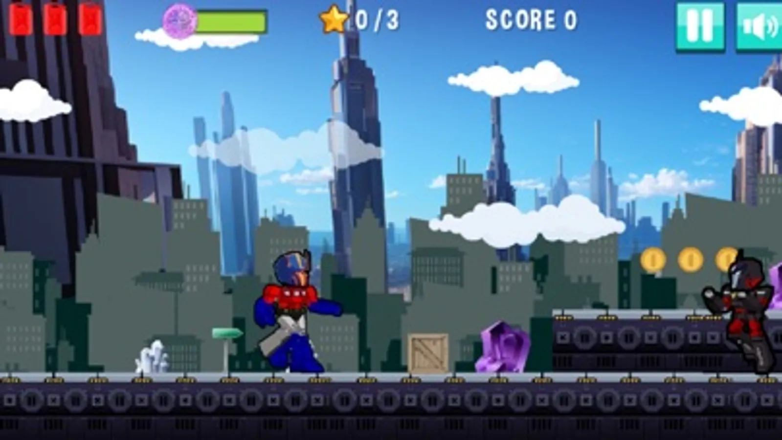 Over 15 stages to clear and collect coins. Use your hard earned coins to unlock other transforming mecha!